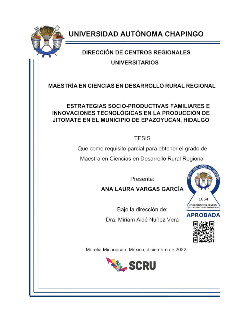 Estrategias socio-productivas familiares e innovaciones tecnológicas en la producción de jitomate en el municipio de Epazoyucan, Hidalgo.