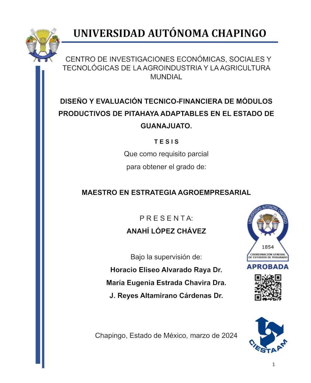 Diseño y evaluación técnico-financiera de módulos productivos de pitahaya adaptables en el estado de Guanajuato