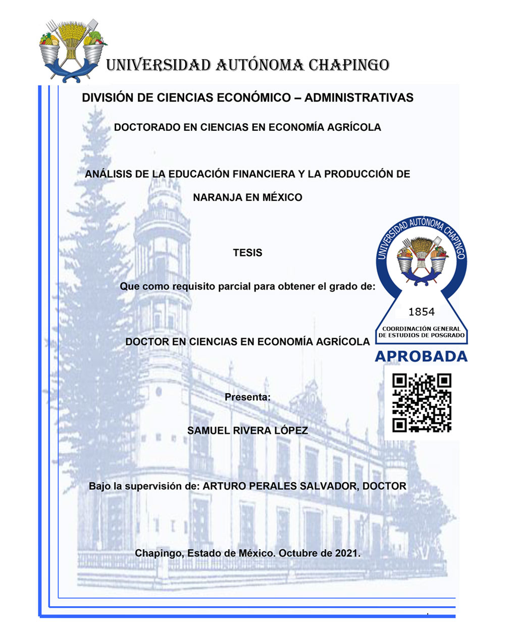 Tesis (Doctorado en Ciencias en Economía Agrícola)