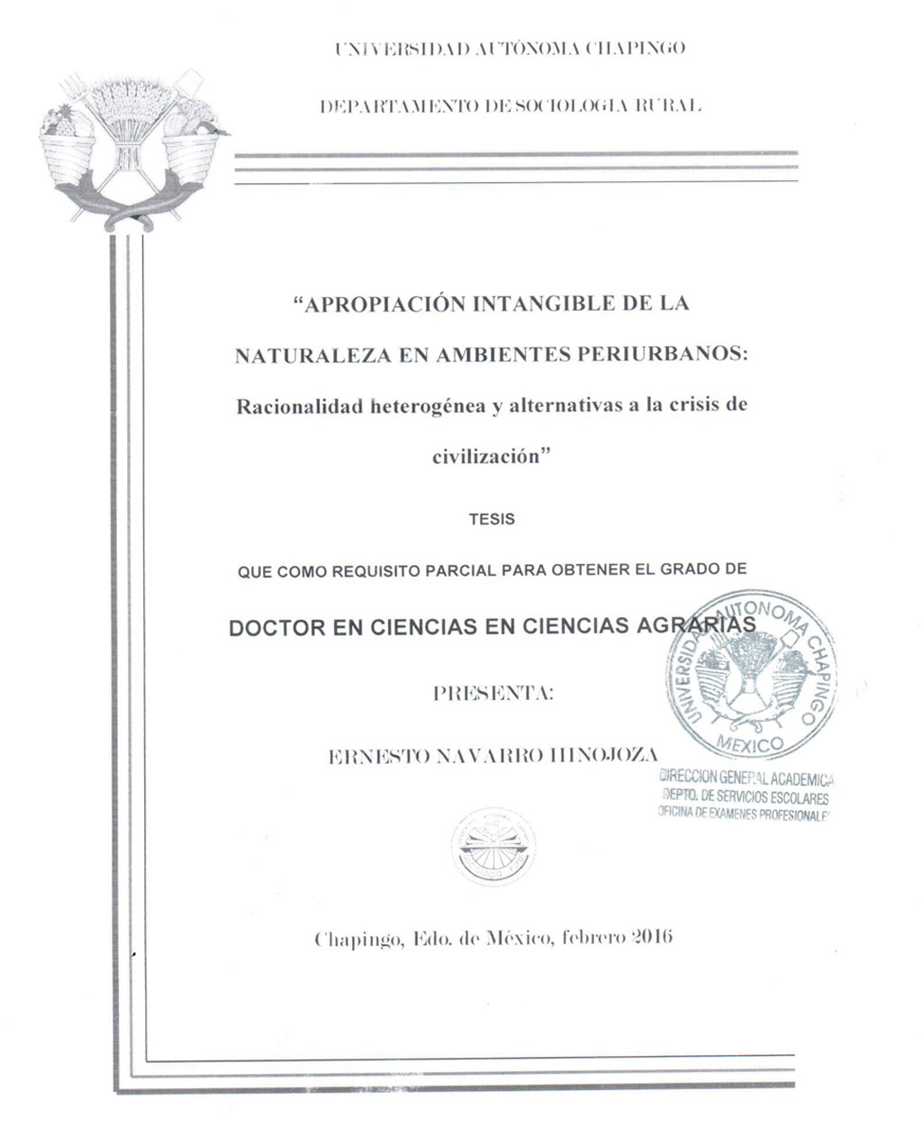 Apropiación intangible de la naturaleza en ambientes periurbanos: Racionalidad heterogénea y alternativas a la crisis de civilización