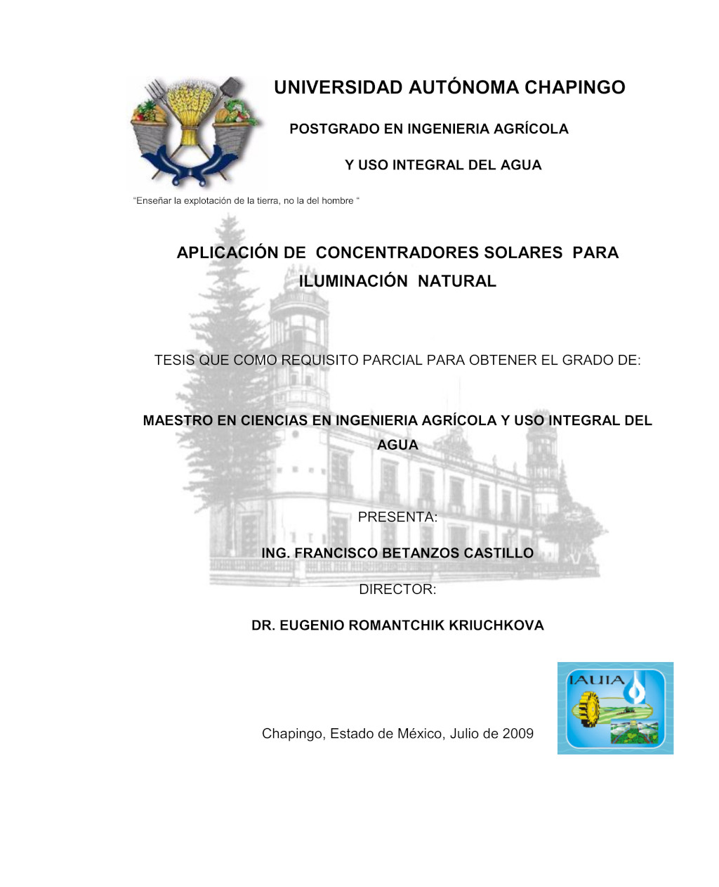 Tesis (Maestría en Ingeniería Agrícola y Uso Integral del Agua)