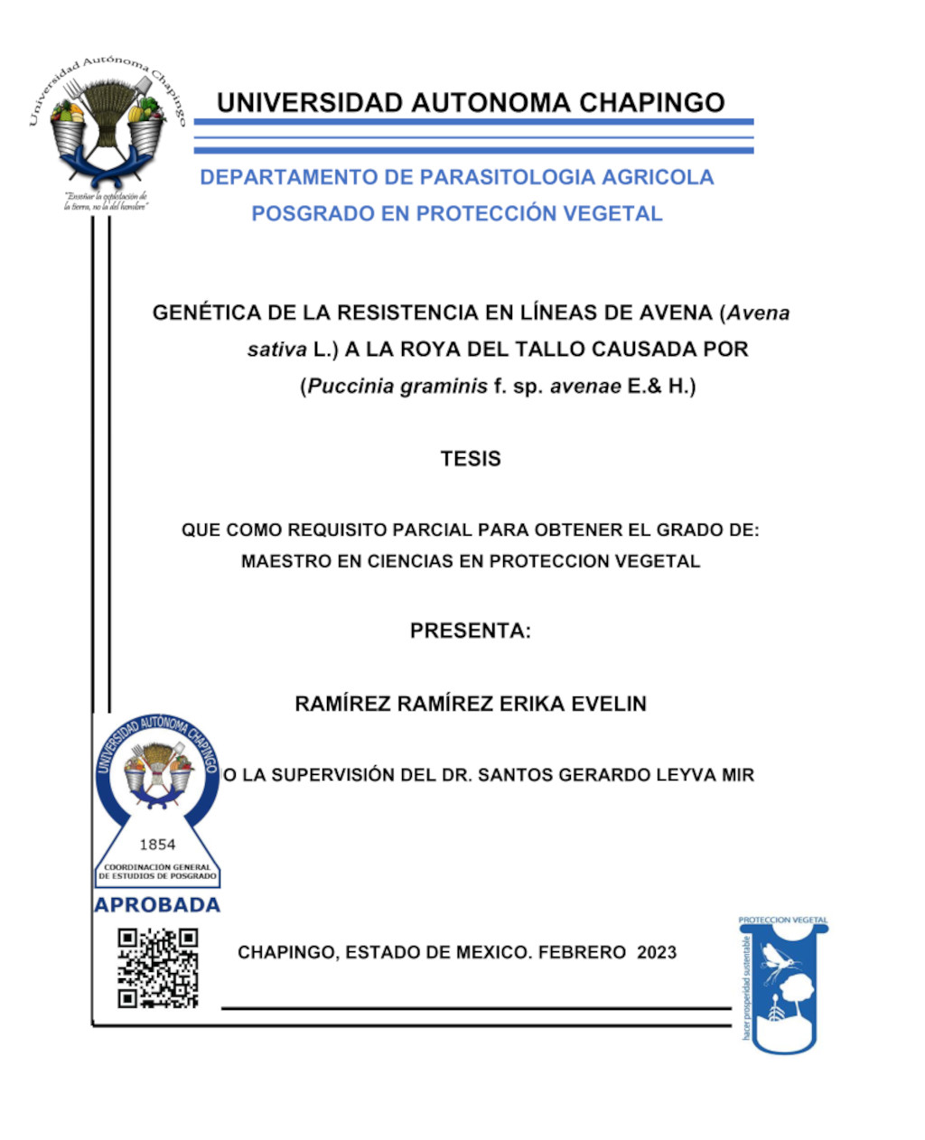 Genética de la resistencia en líneas de avena (Avena sativa L.) a la roya del tallo causada por (Puccinia graminis f. sp. avenae E.& H.)