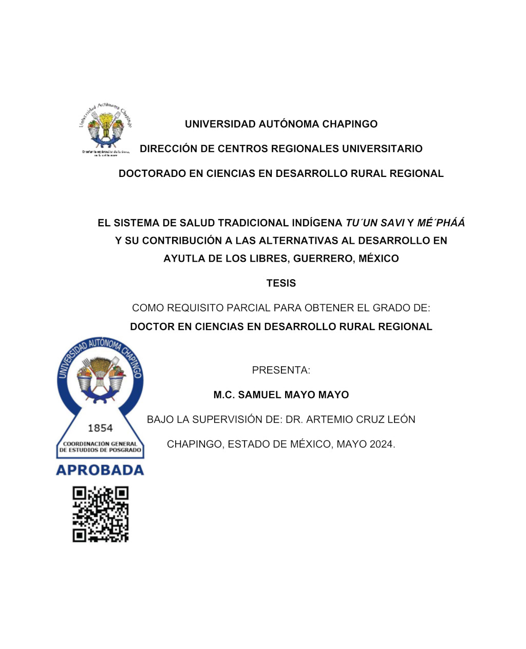 El sistema de salud tradicional indígena TU´UN SAVI Y MÉ´PHÁÁ y su contribución a las alternativas al desarrollo en Ayutla de los Libres, Guerrero, México