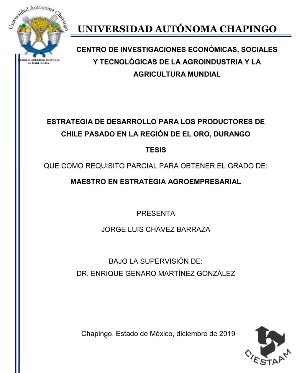 Tesis (Maestría en Estrategia Agroempresarial)