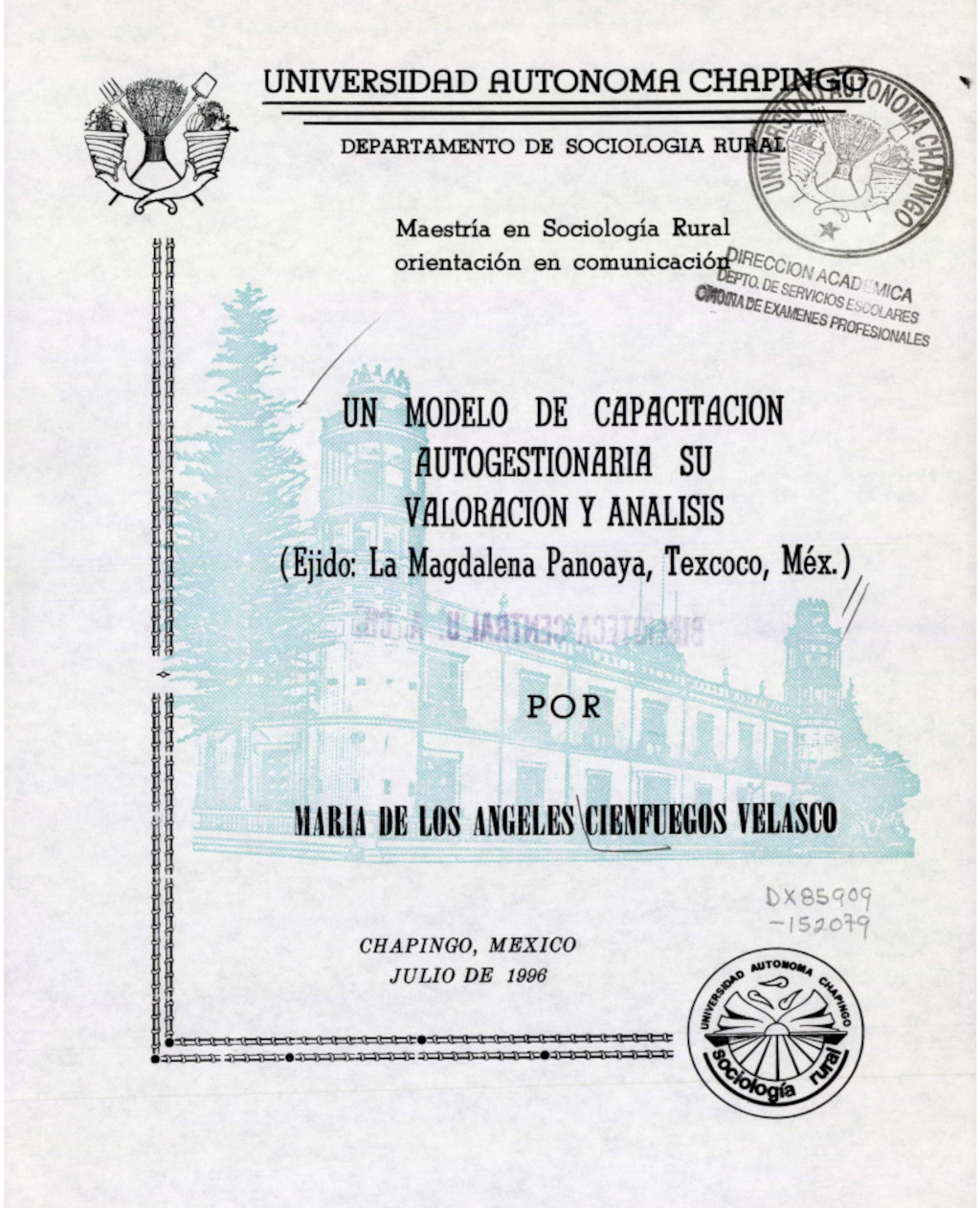 Un modelo de capacitación autogestionaria. Su valoración y análisis (Ejido: La Magdalena Panoaya, Tex. Méx.)