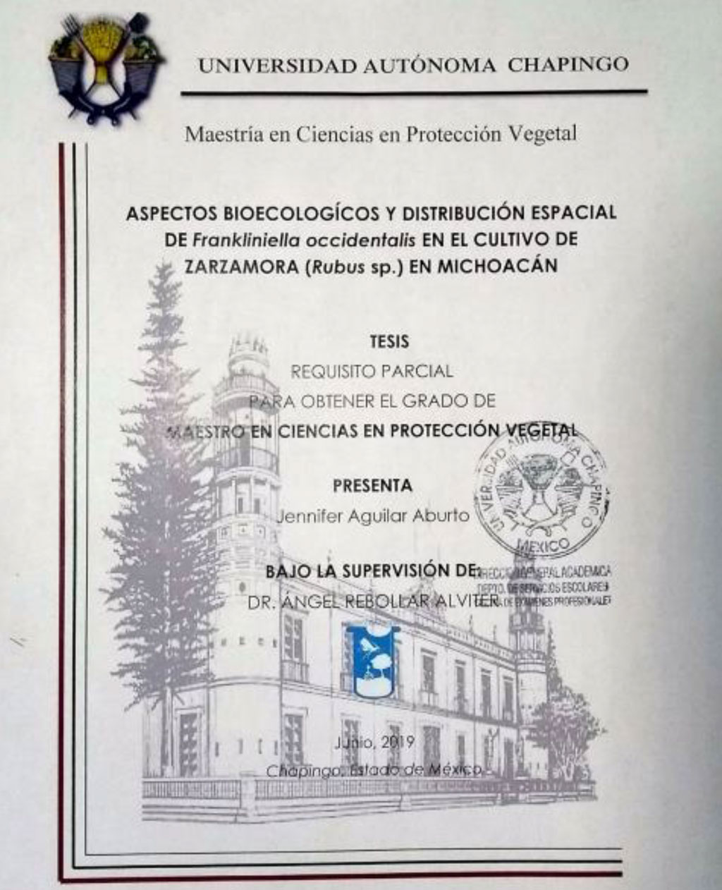 Aspectos bioecologícos y distribución espacial de Frankliniella occidentails en el cultivo de zarzamora (Rubus sp.) en Michoacán