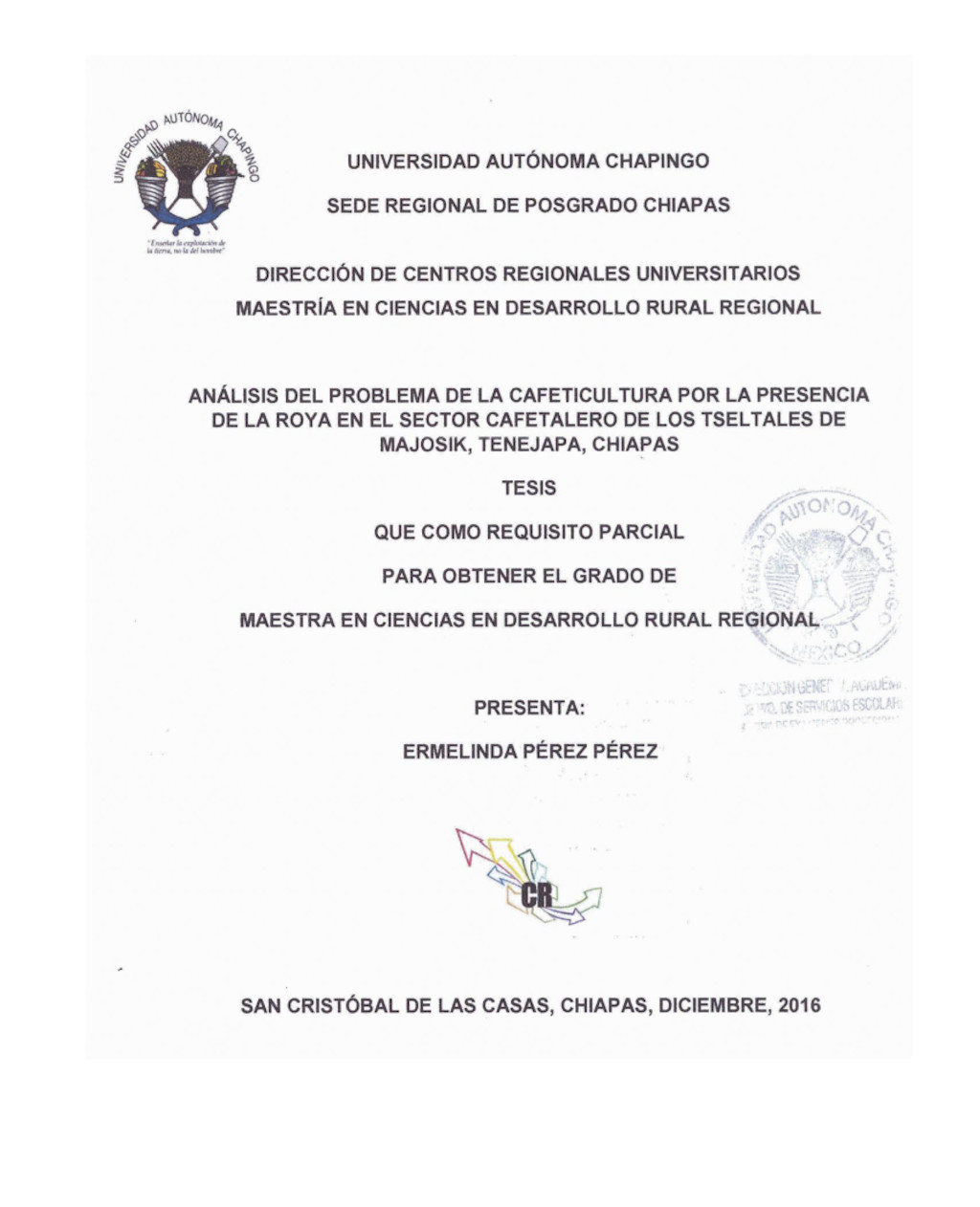 Análisis del problema de la cafeticultura por la presencia de la roya en el sector cafetalero de los tseltales de Majosik, Tenejapa, Chiapas