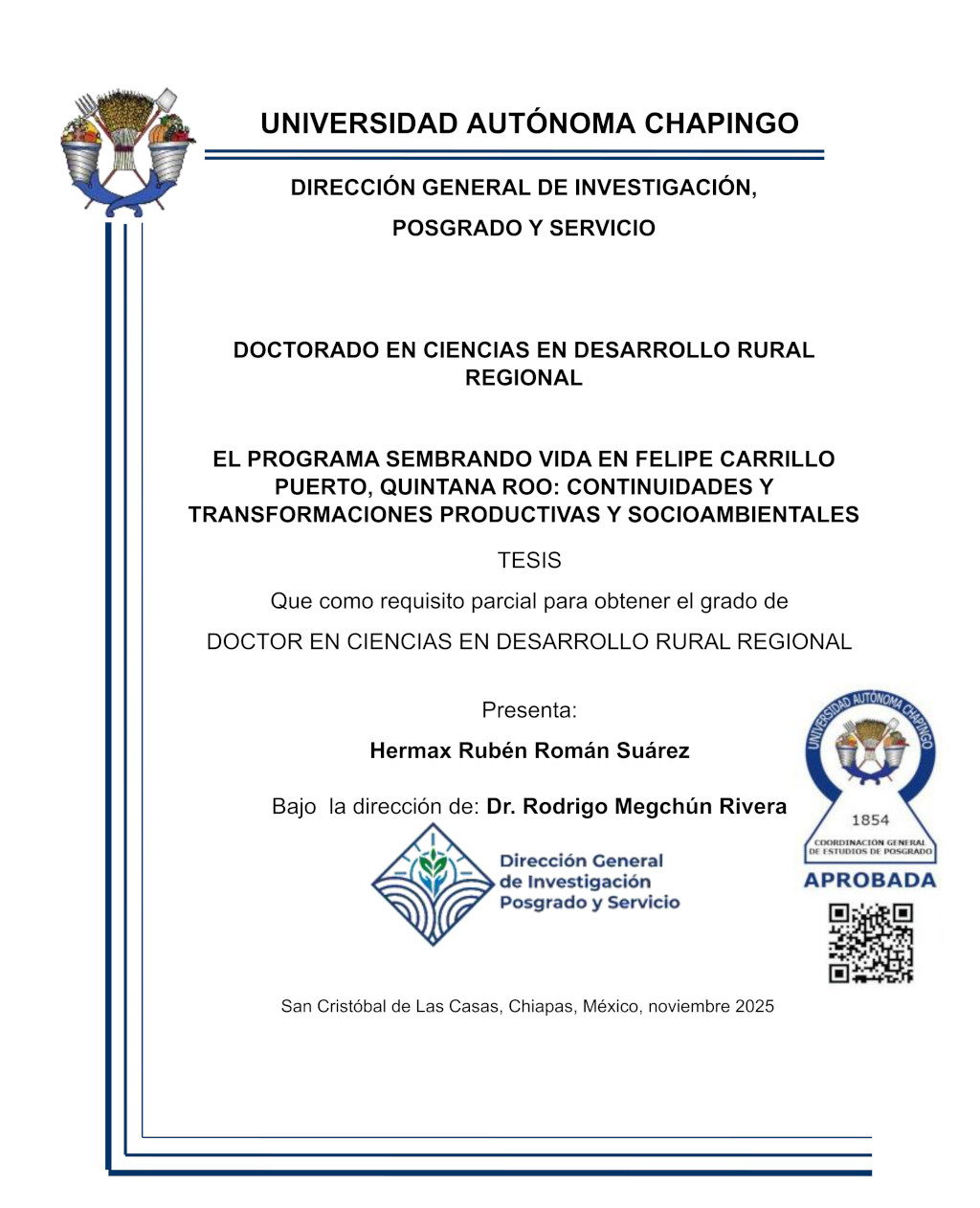 Tesis (Doctorado en Ciencias en Desarrollo Rural Regional)