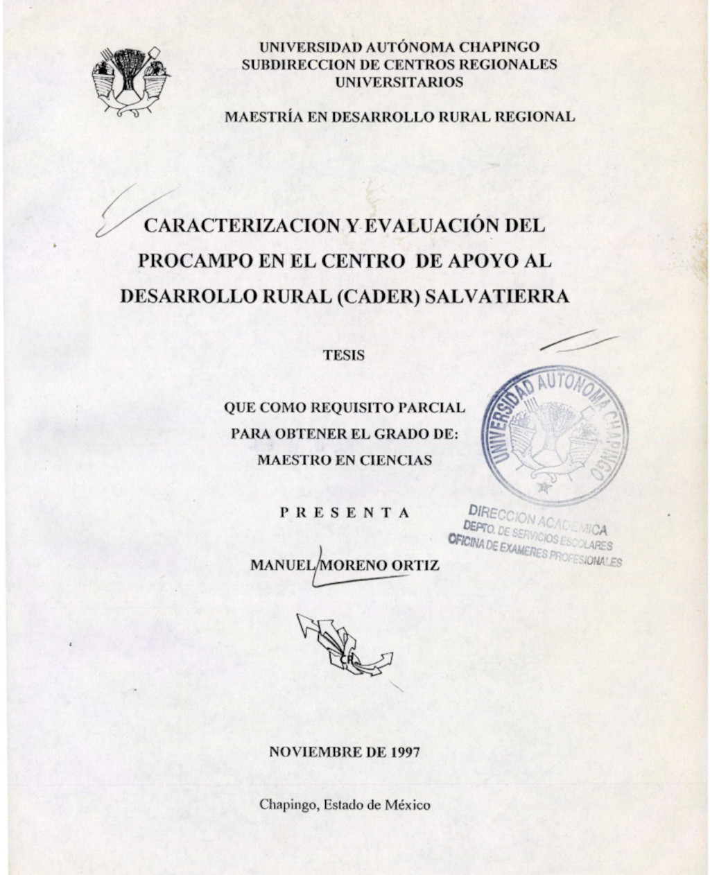 Caracterización y evaluación del PROCAMPO en el Centro de Apoyo al Desarrollo Rural (CADER) Salvatierra
