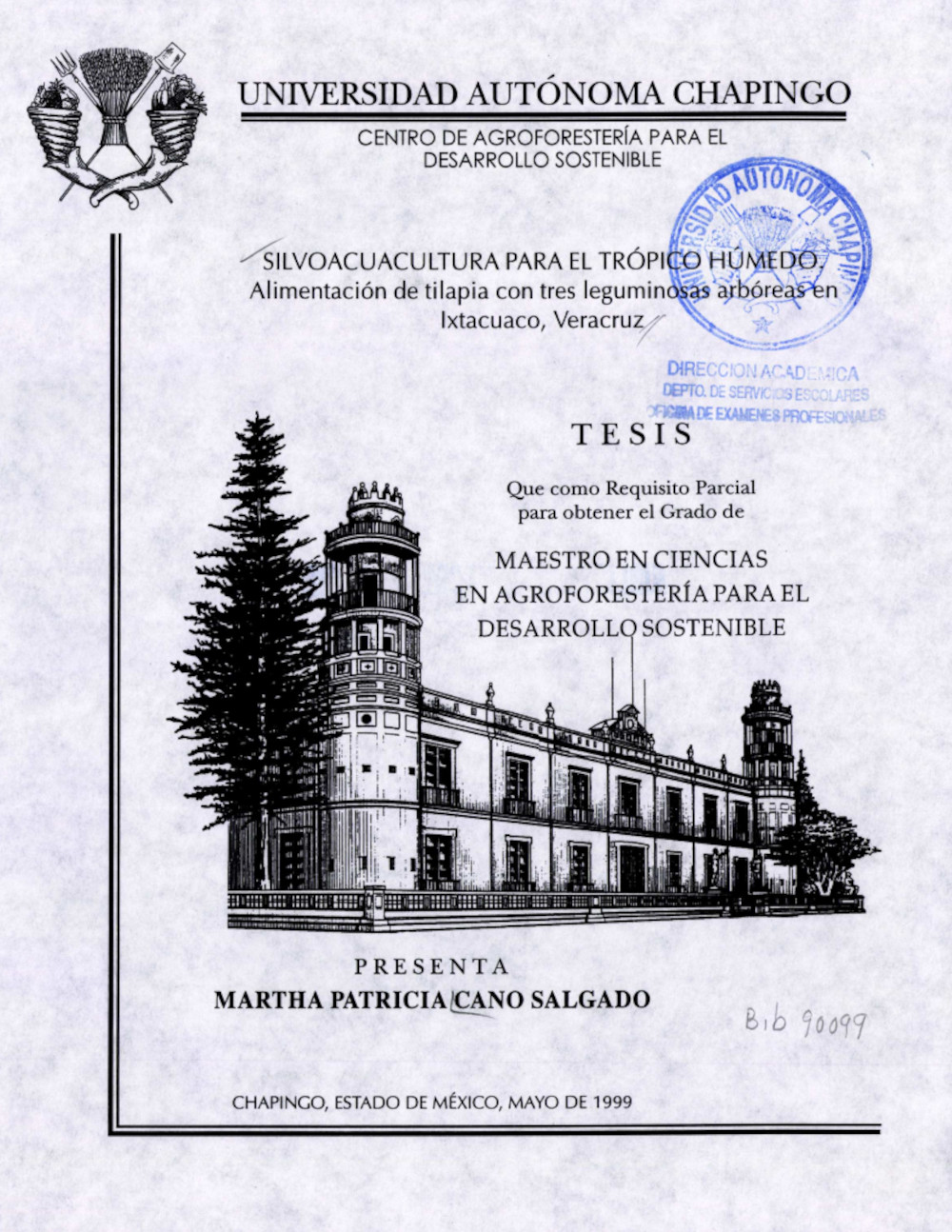 Silvoacuacultura para el tropico húmedo. Alimentación de tilapia con tres leguminosas lxtacuaco, Veracruz