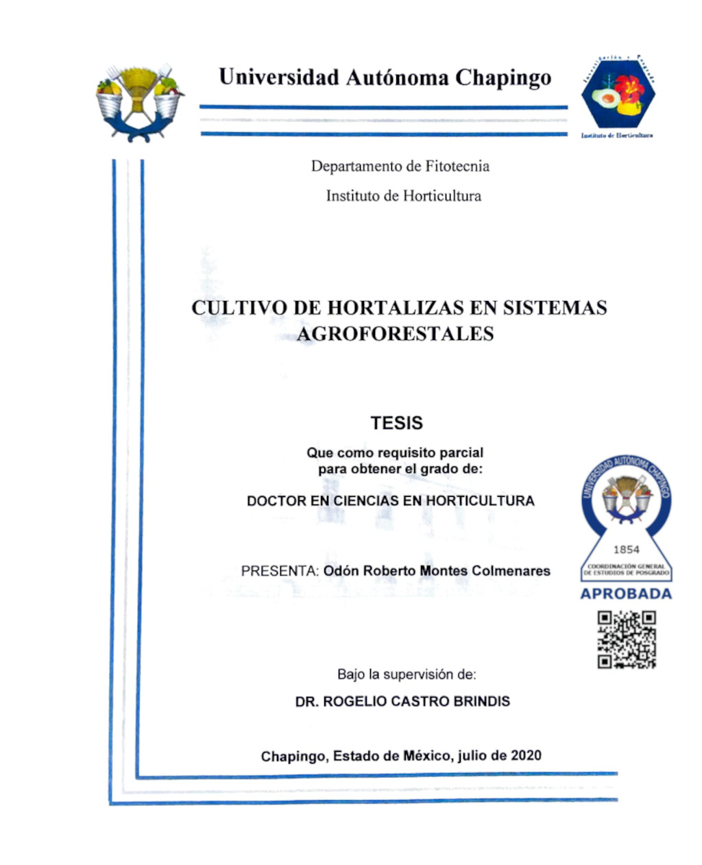 principal de la presente tesis es proponer los sistemas agroforestales hortícolas