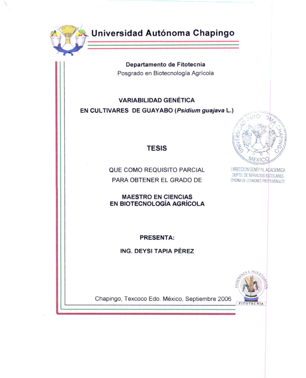Tesis (Maestría en Ciencias en Biotecnología Agrícola)