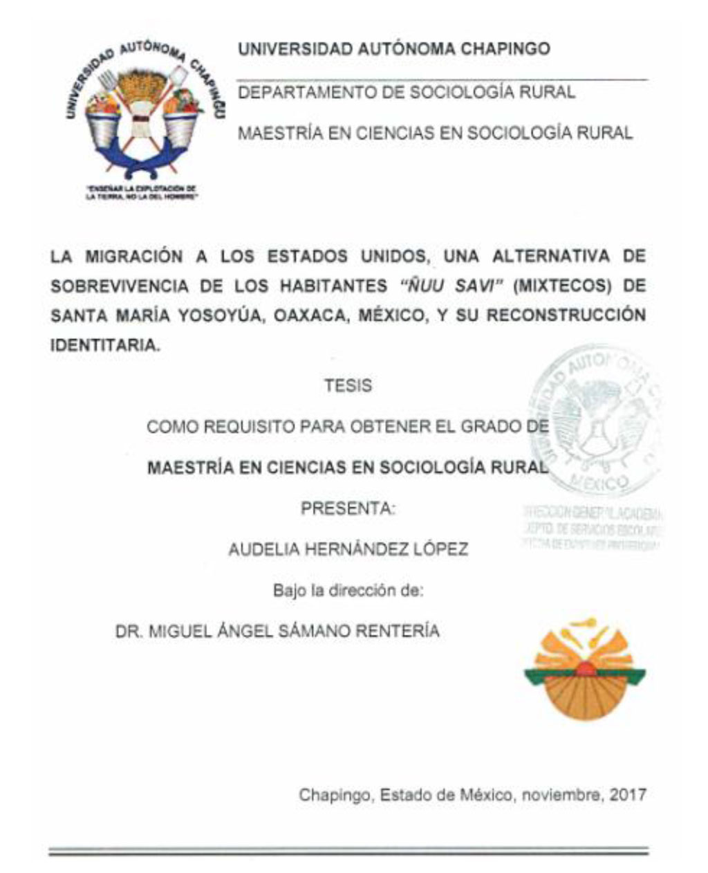 La migración a los Estados Unidos, una alternativa de sobrevivencia de los habitantes "ñuu savi" (mixtecos) de Santa María Yosoyúa, Oaxaca, México, y su reconstrucción identitaria