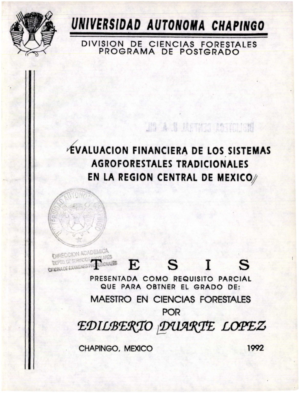 Evaluación financiera de los sistemas agroforestales tradicionales en la región central de México