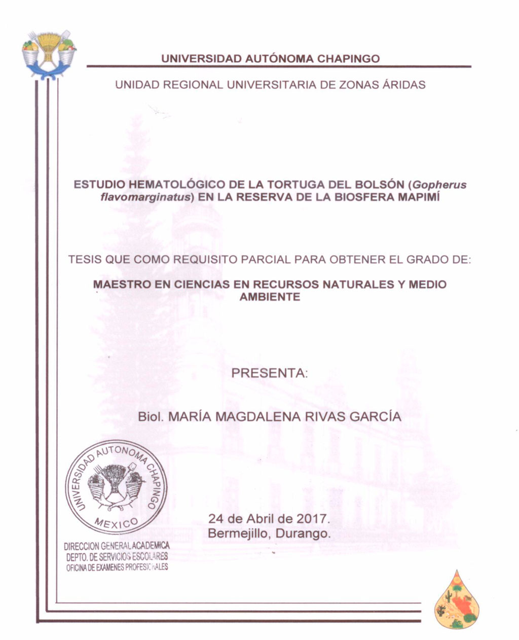 ESTUDIO HEMATOLÓGICO DE LA TORTUGA DEL BOLSÓN (Gopherus flavomarginatus) EN LA RESERVA DE LA BIOSFERA MAPIMÍ