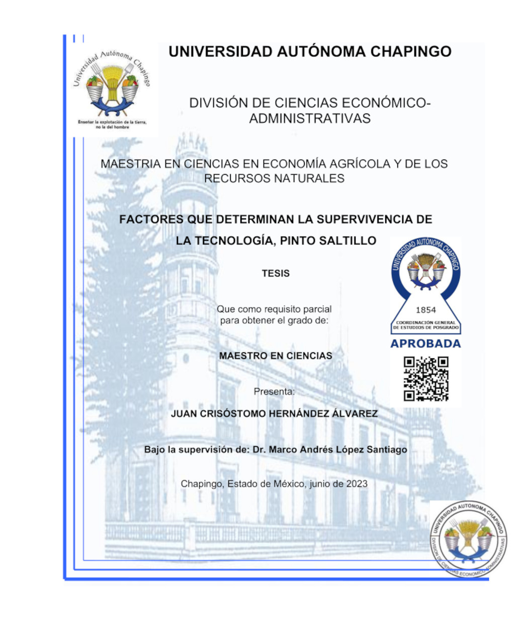 Tesis (Maestría en Ciencias en Economía Agrícola y de los Recursos Naturales)