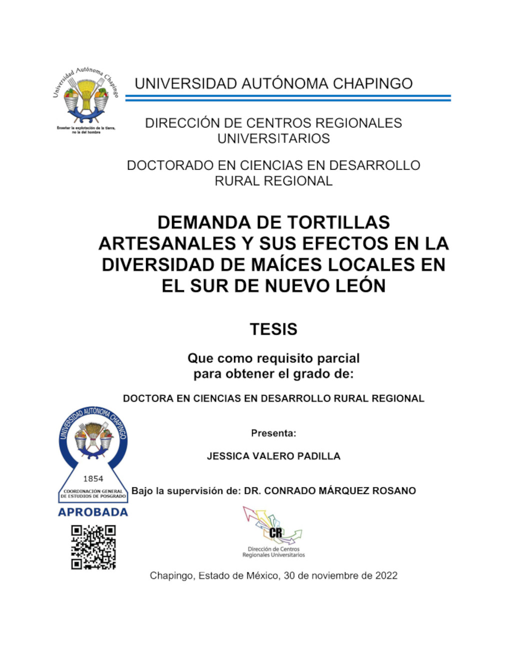 Demanda de tortillas artesanales y sus efectos en la diversidad de maíces locales en el sur de Nuevo León