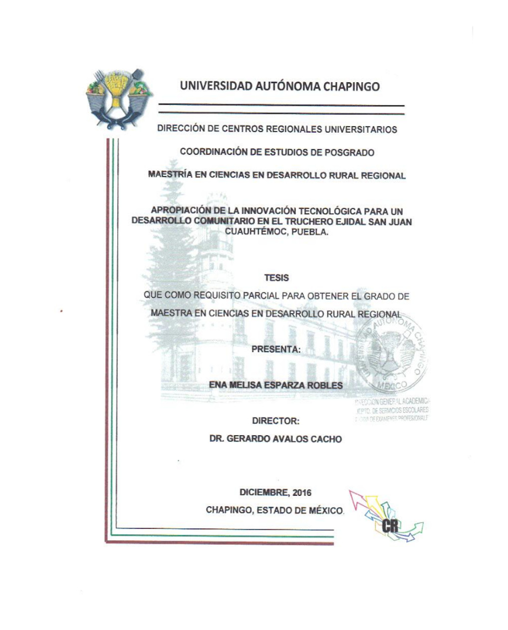 Tesis (Maestría en Ciencias en Desarrollo Rural Regional)