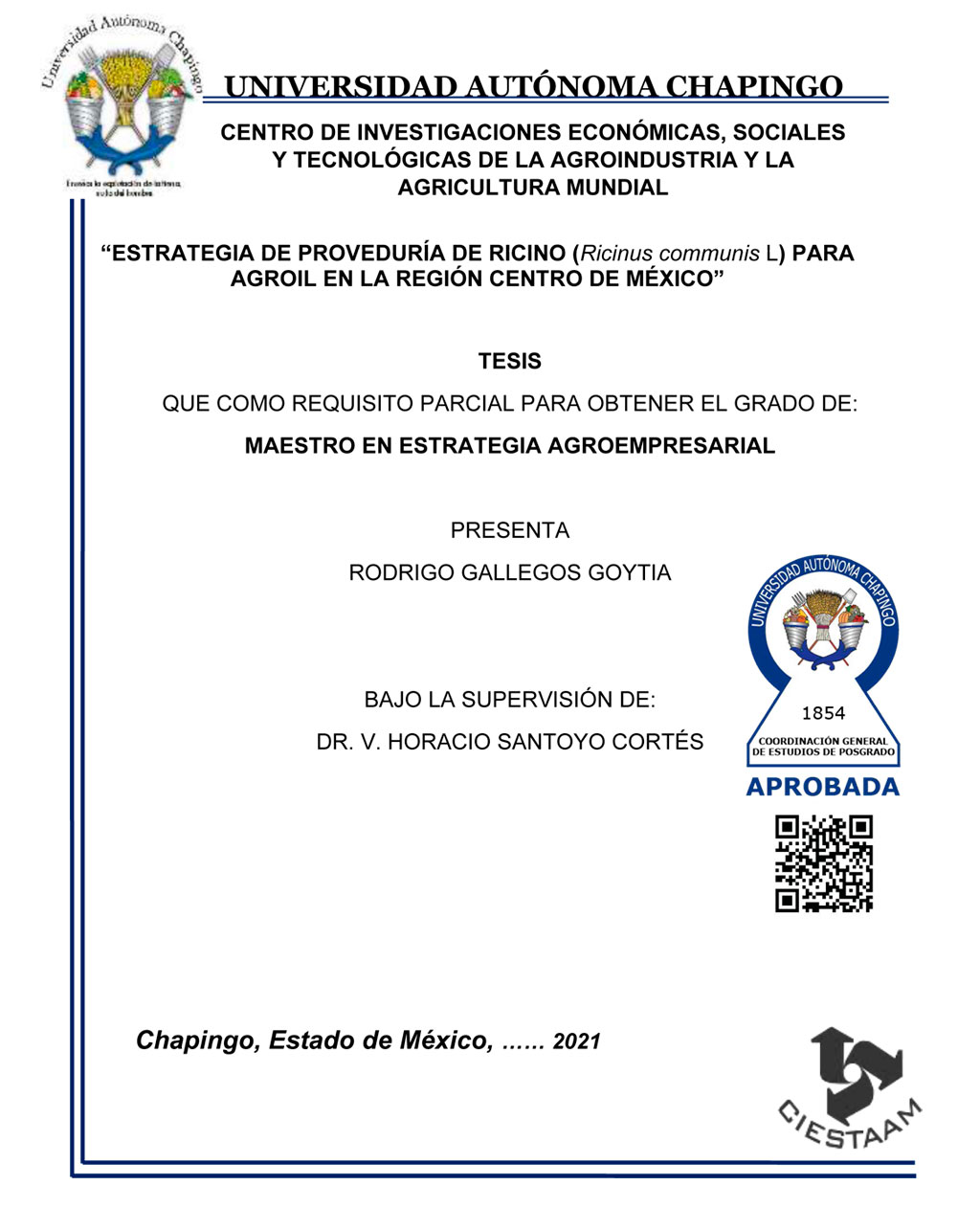 Estrategia de Proveeduría de Ricino (Ricinus communis L) para Agroil en la Región Centro de México
