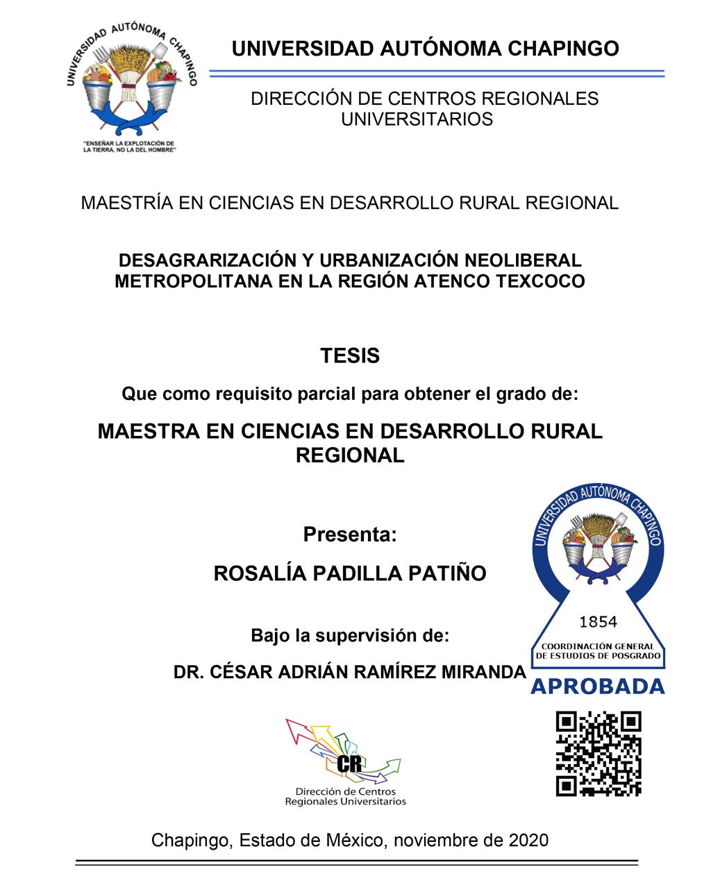 Desagrarización y Urbanización Neoliberal Metropolitana en la Región Atenco Texcoco