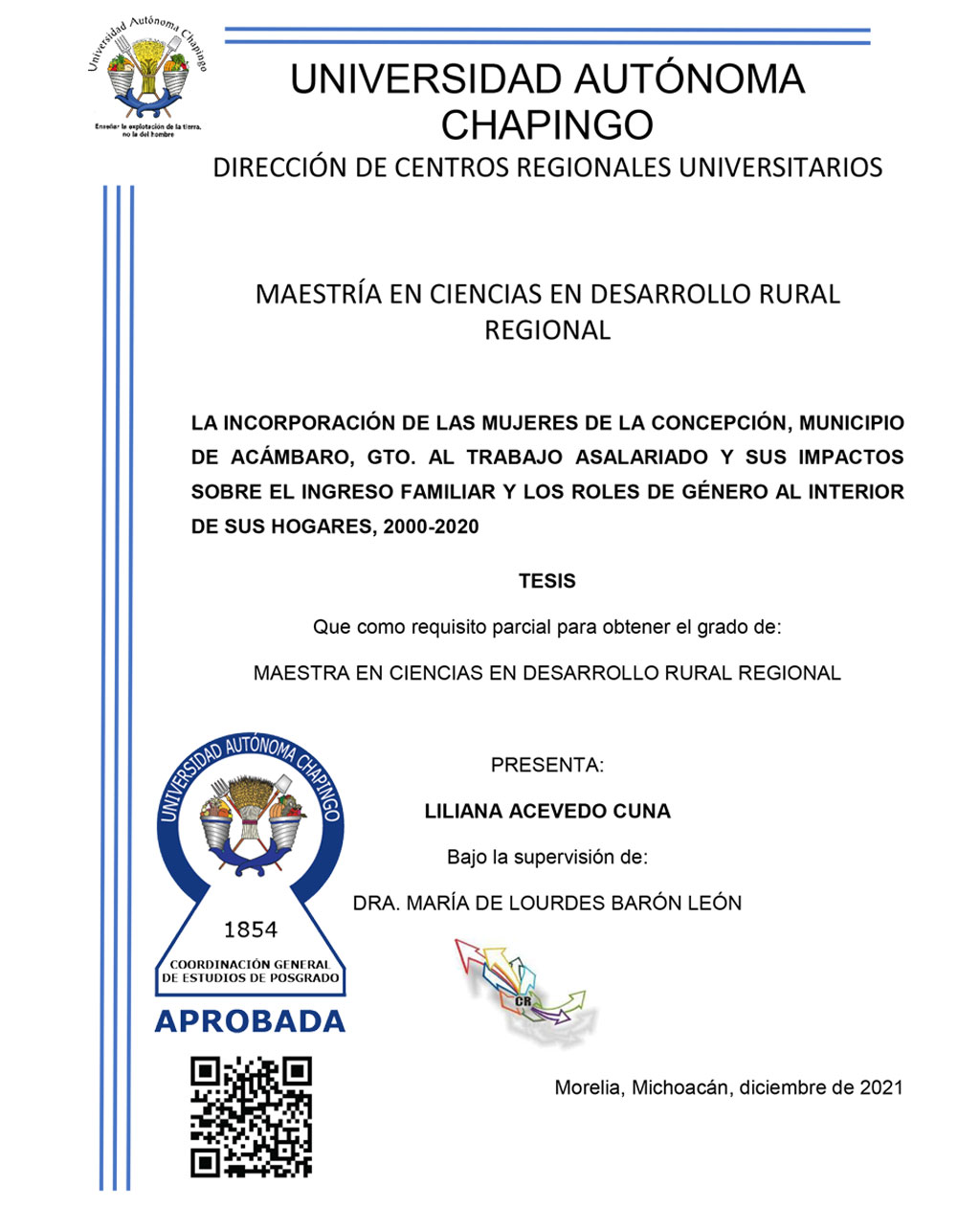 La incorporación de las mujeres de La Concepción, municipio de Acámbaro, Gto. Al trabajo asalariado y sus impactos sobre el ingreso familiar y los roles de género al interior de sus hogares, 2000-2020