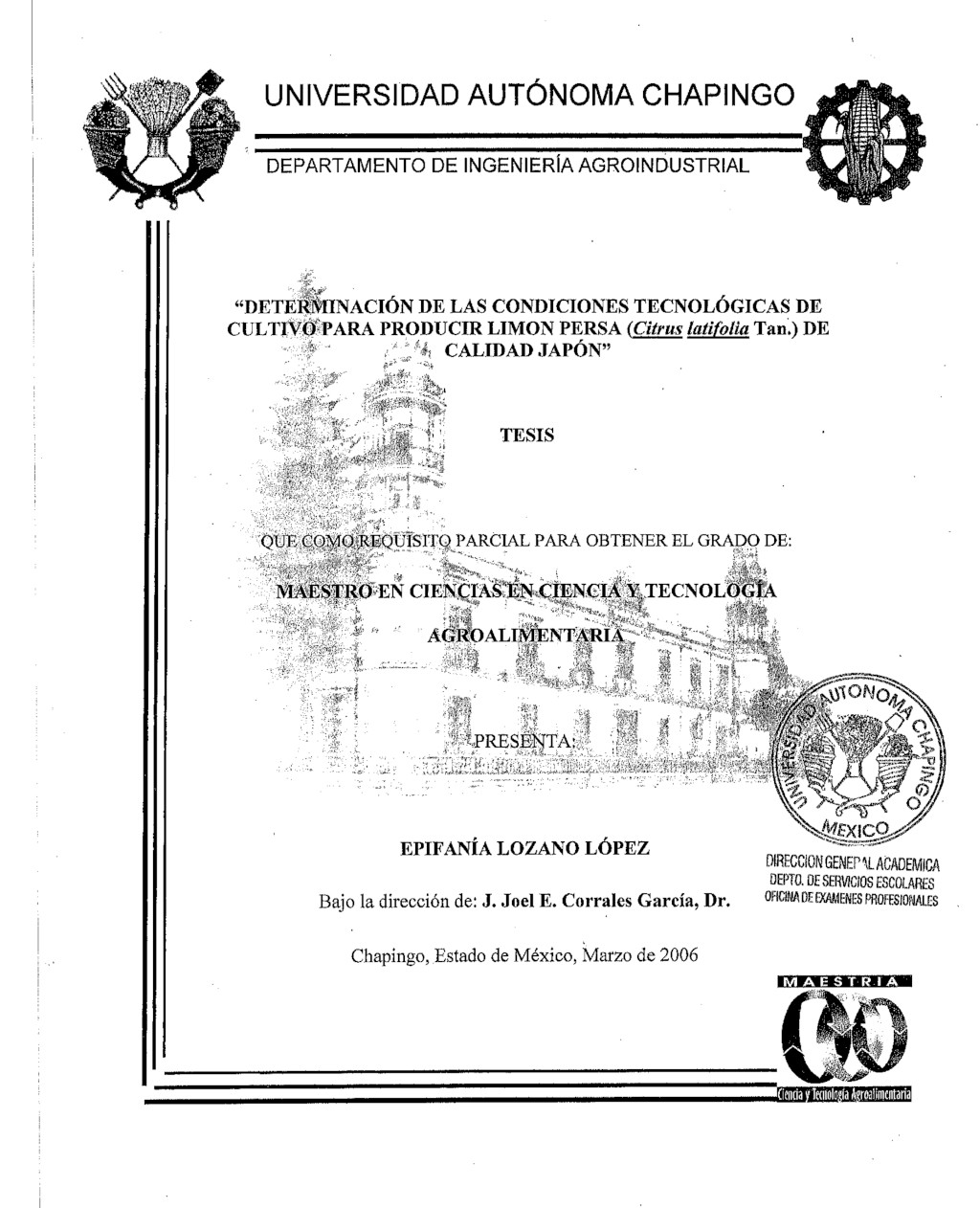 Determinación de las condiciones tecnológicas de cultivo para producir limón persa (Citrus latifolia Tan.) de calidad Japón