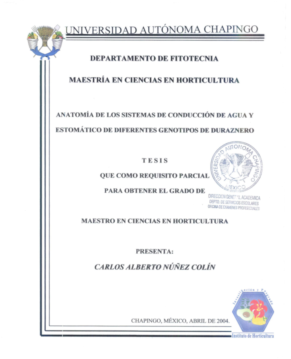 Anatomía de los sistemas de conducción de agua y estomático de diferentes genotipos de duraznero