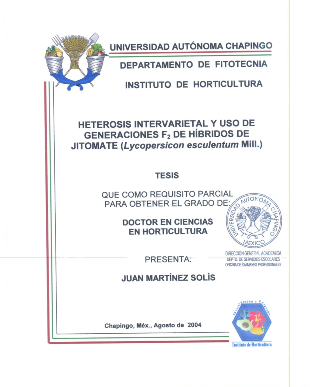 Con el propósito de determinar la conveniencia del uso de generaciones F2 de híbridos para producción de jitomate y la posibilidad de utilizar híbridos comerciales de jitomate como progenitores en programas de mejoramiento genético, fueron desarrollados dos proyectos de investigación en la Universidad
