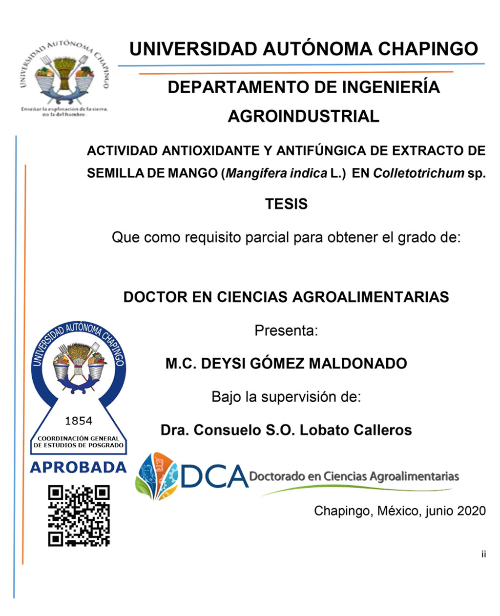 Actividad antioxidante y antifúngica de extracto de semilla de mango (Mangifera indica L.) en Colletotrichum sp.