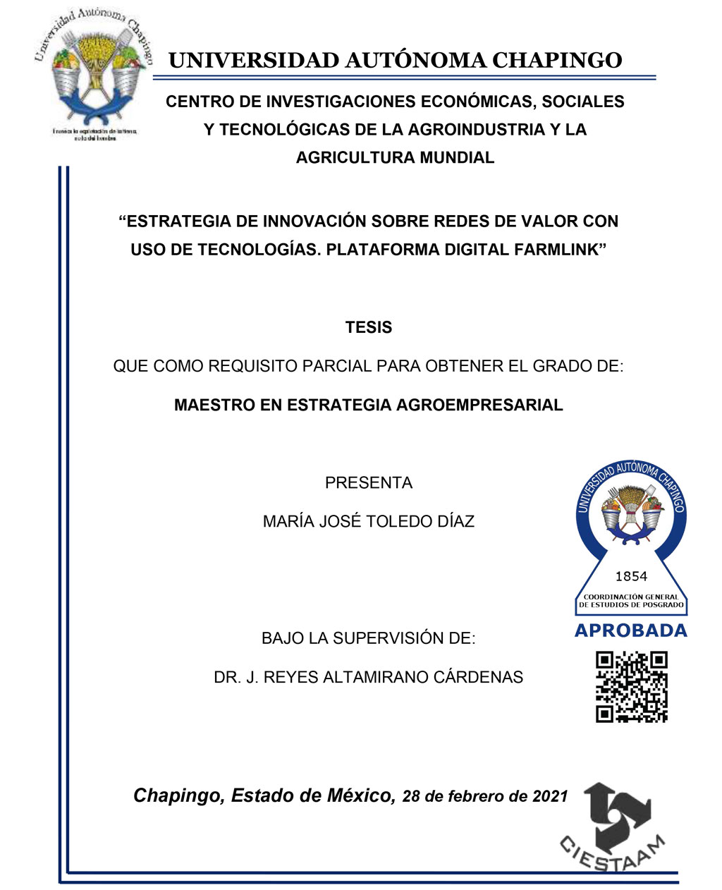 Tesis (Maestría en Ciencias en Estrategia Agroempresarial)