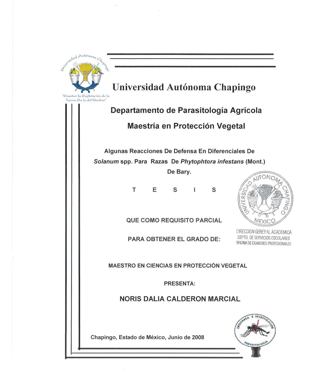 Tesis (Maestría en Ciencias en Protección Vegetal)