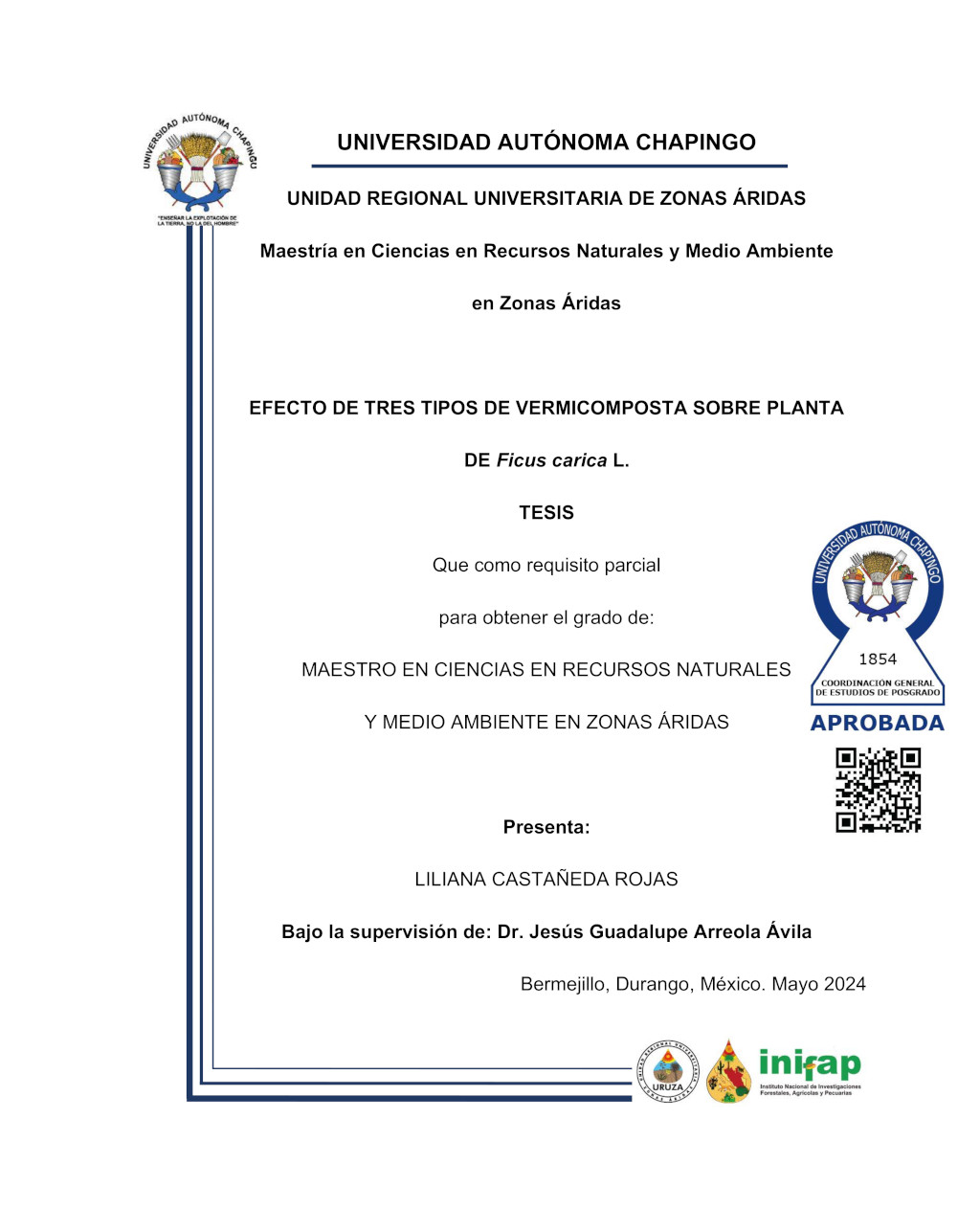 Tesis (Maestría en Ciencias en Recursos Naturales y Medio Ambiente en Zonas Áridas)