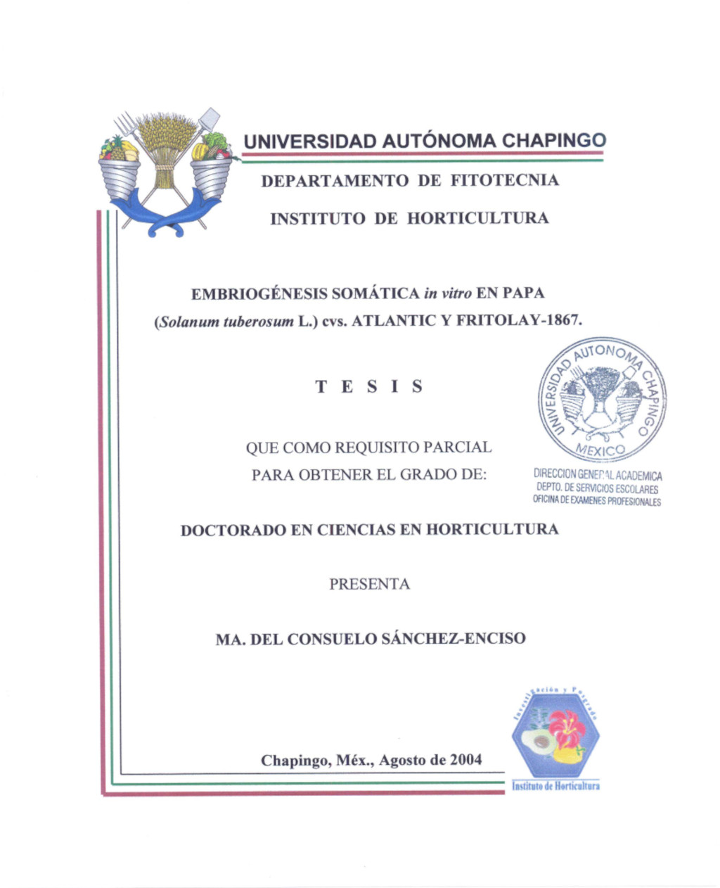 Tesis (Doctorado en Ciencias en Horticultura)