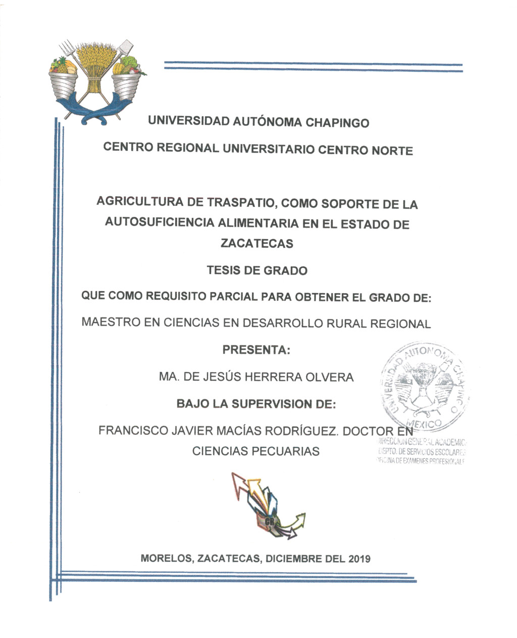 Agricultura de traspatio, como soporte de la autosuficiencia alimentaria en el Estado de Zacatecas