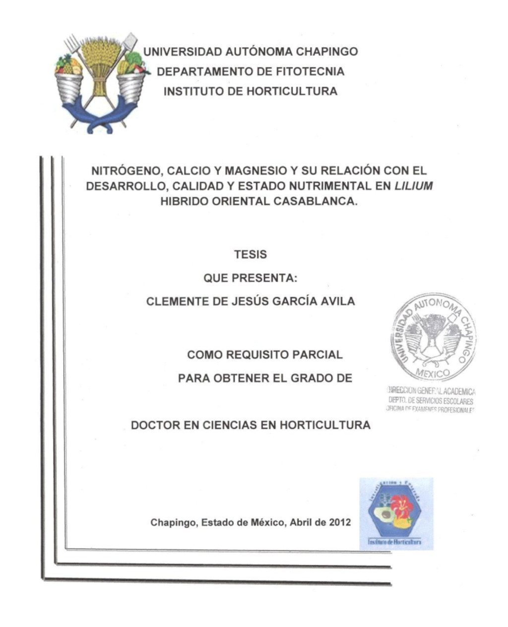 Nitrógeno, calcio y magnesio y su relación con el desarrollo, calidad y estado nutrimental en lilium híbrido oriental casablanca