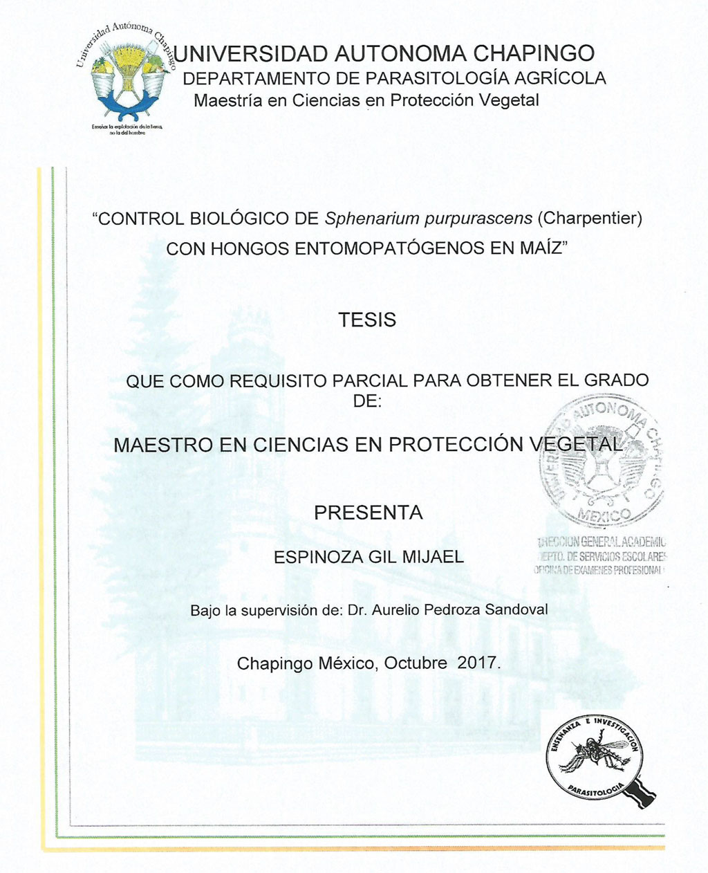 Tesis (Maestría en Ciencias en Protección Vegetal)