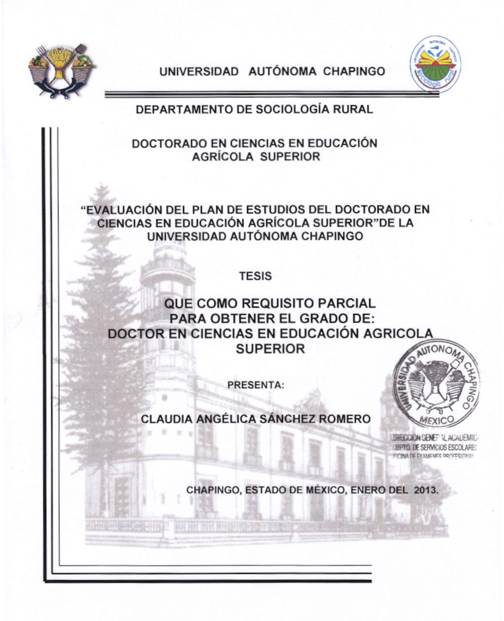 “Evaluación del plan de estudios del Doctorado en Ciencias en Educación Agrícola Superior” de la Universidad Autónoma Chapingo