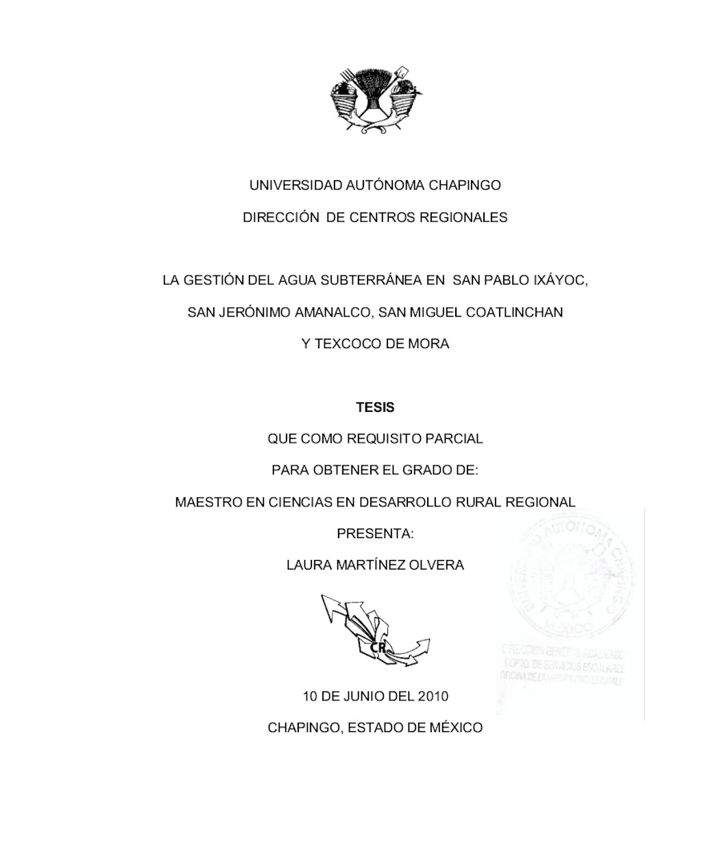 La gestión del agua subterránea en San Pablo Ixáyoc, San Jerónimo Amanalco, San Miguel Coatlinchan y Texcoco de Mora
