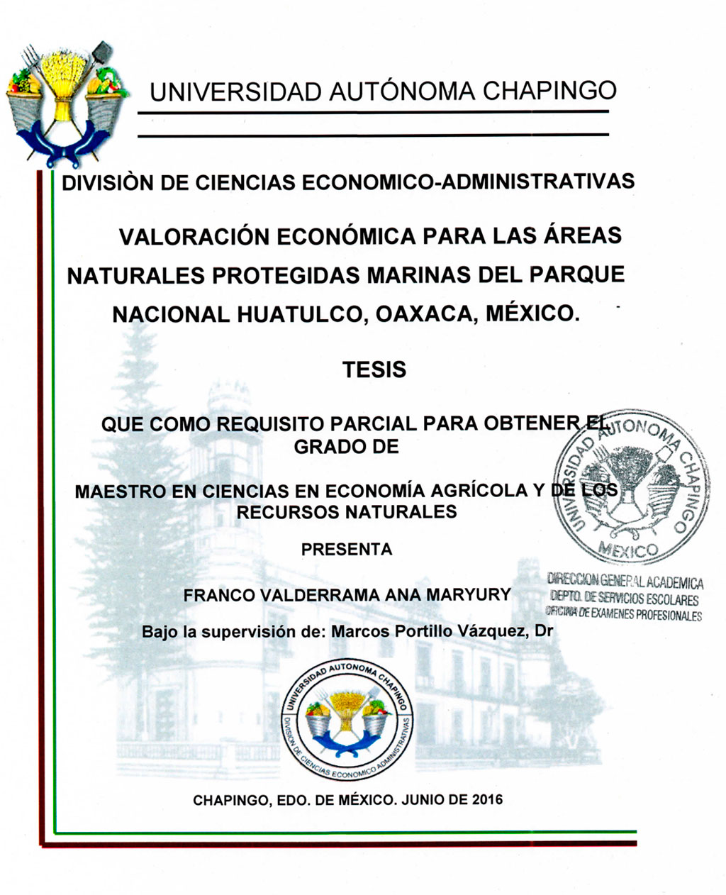 Valoración Económica para las Áreas Naturales Protegidas Marinas del Parque Nacional Huatulco, Oaxaca, México