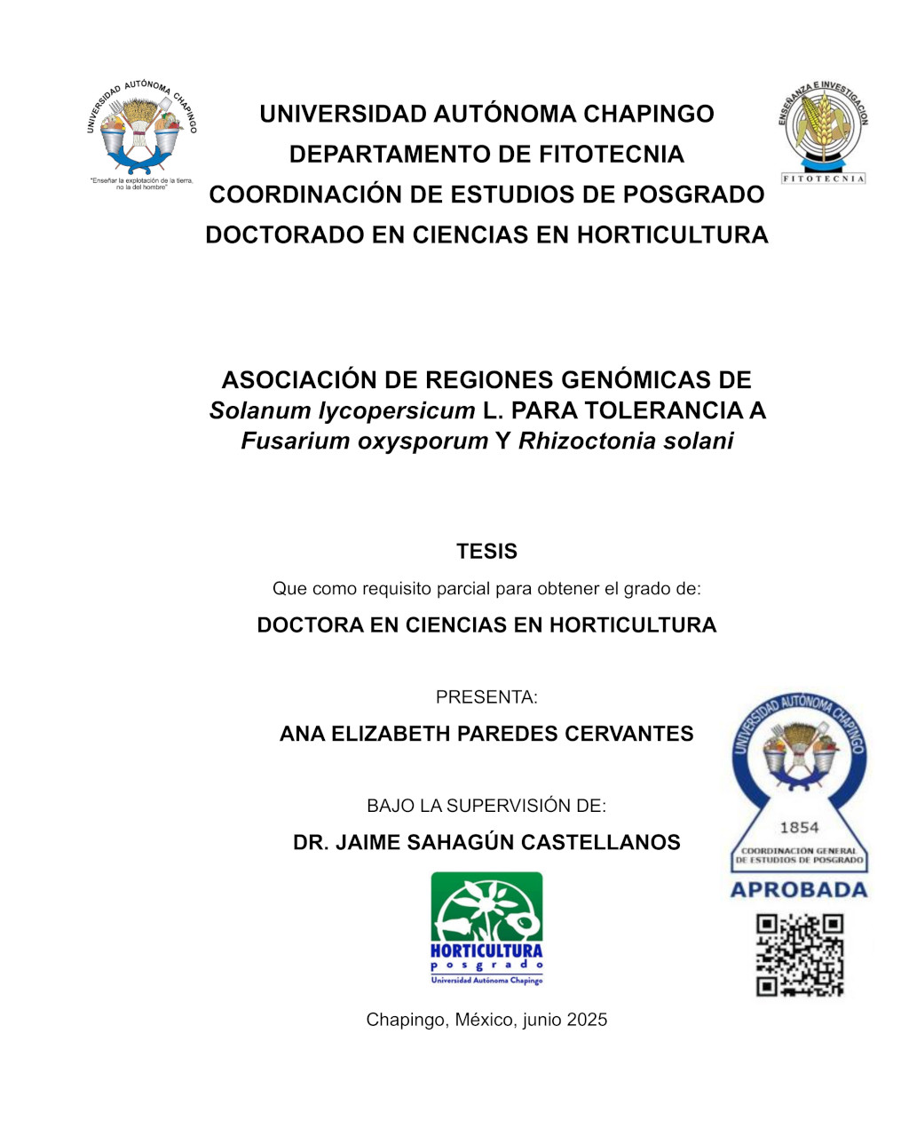 Asociación de regiones genómicas de Solanum lycopersicum L. para tolerancia a Fusarium oxysporum y Rhizoctonia solani