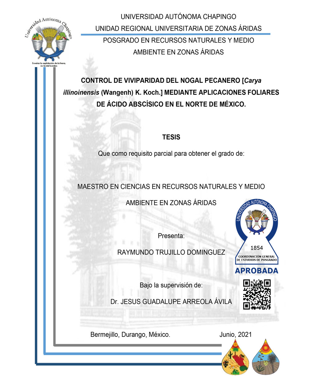 Control de viviparidad del nogal pecanero [carya illinoinensis (wangenh) k. koch.] Mediante aplicaciones foliares de ácido abscísico en el norte de México