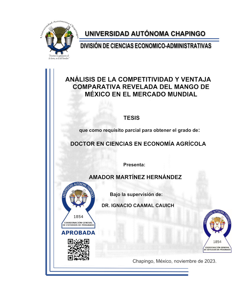 Análisis de la competitividad y ventaja comparativa revelada del mango de México en el mercado mundial