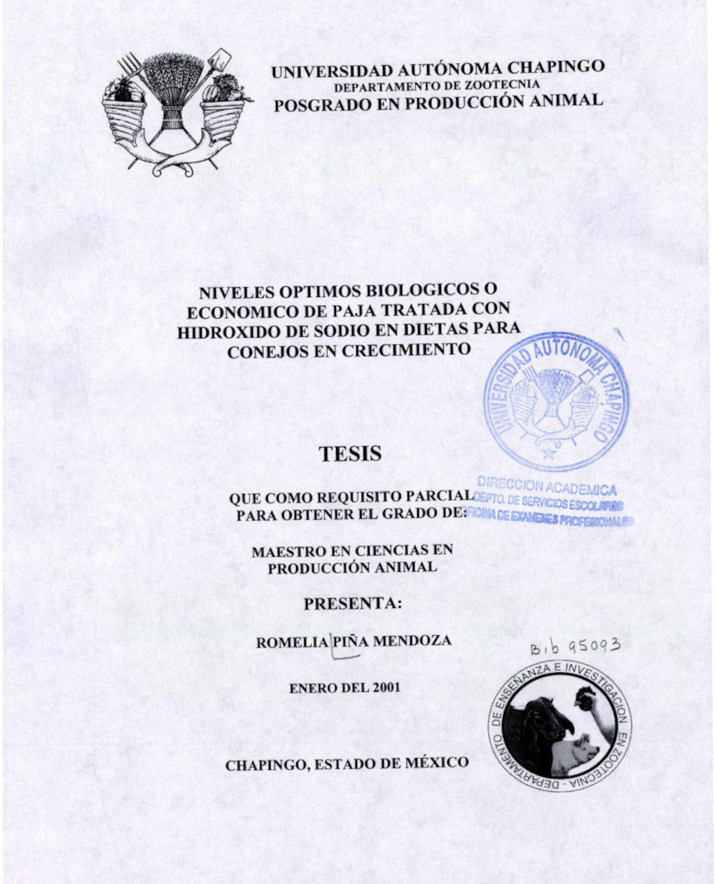 Niveles óptimos biológicos ó económico de paja tratada con hidróxido de sodio en dietas para conejos en crecimiento