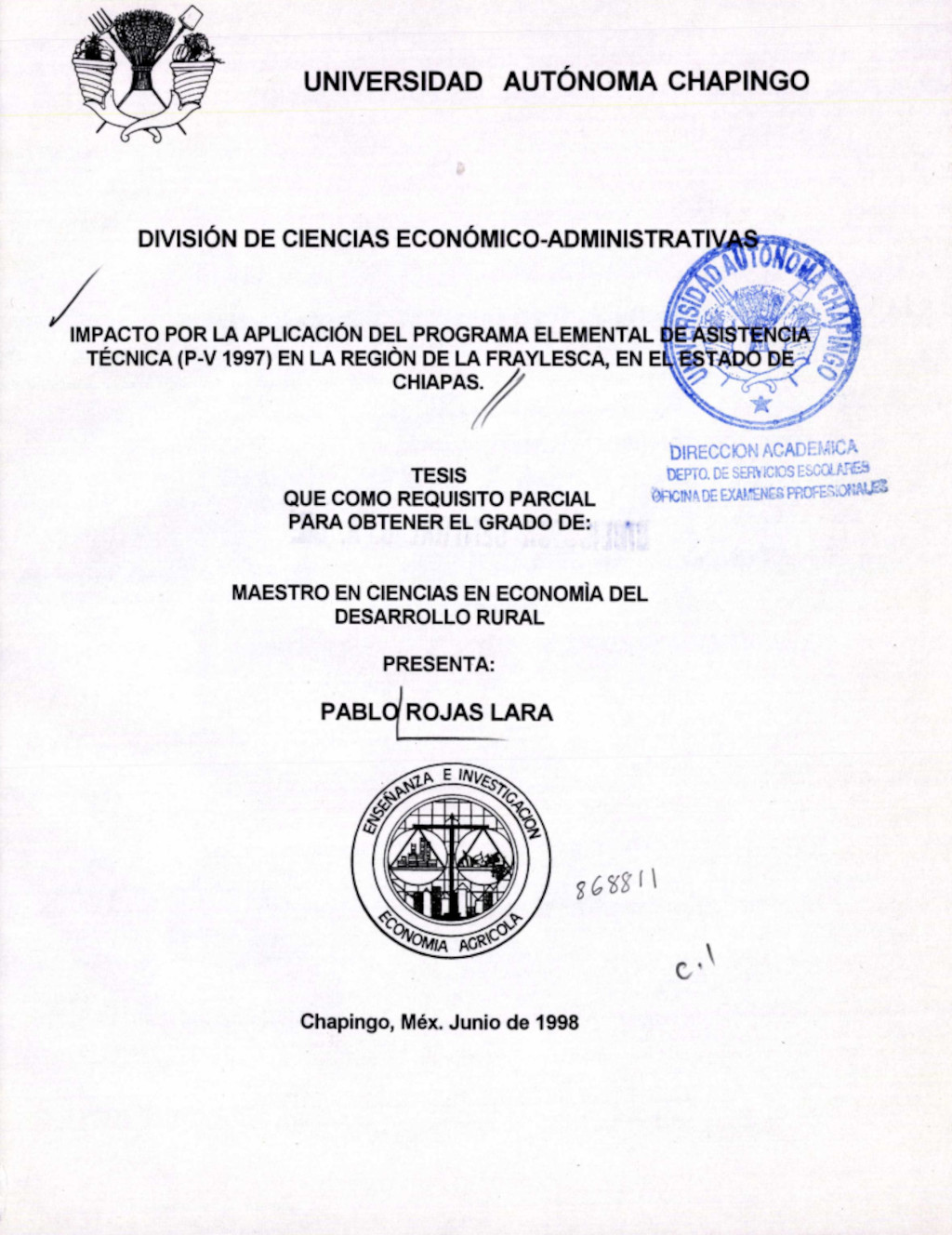 Impacto por la aplicación del programa elemental de asistencia técnica (P-V 1997) en la región de la Fraylesca en el Estado de Chiapas