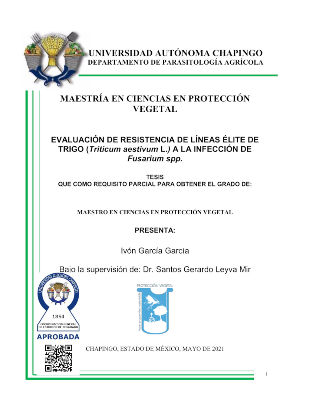 Tesis (Maestría en Ciencias en Protección Vegetal)