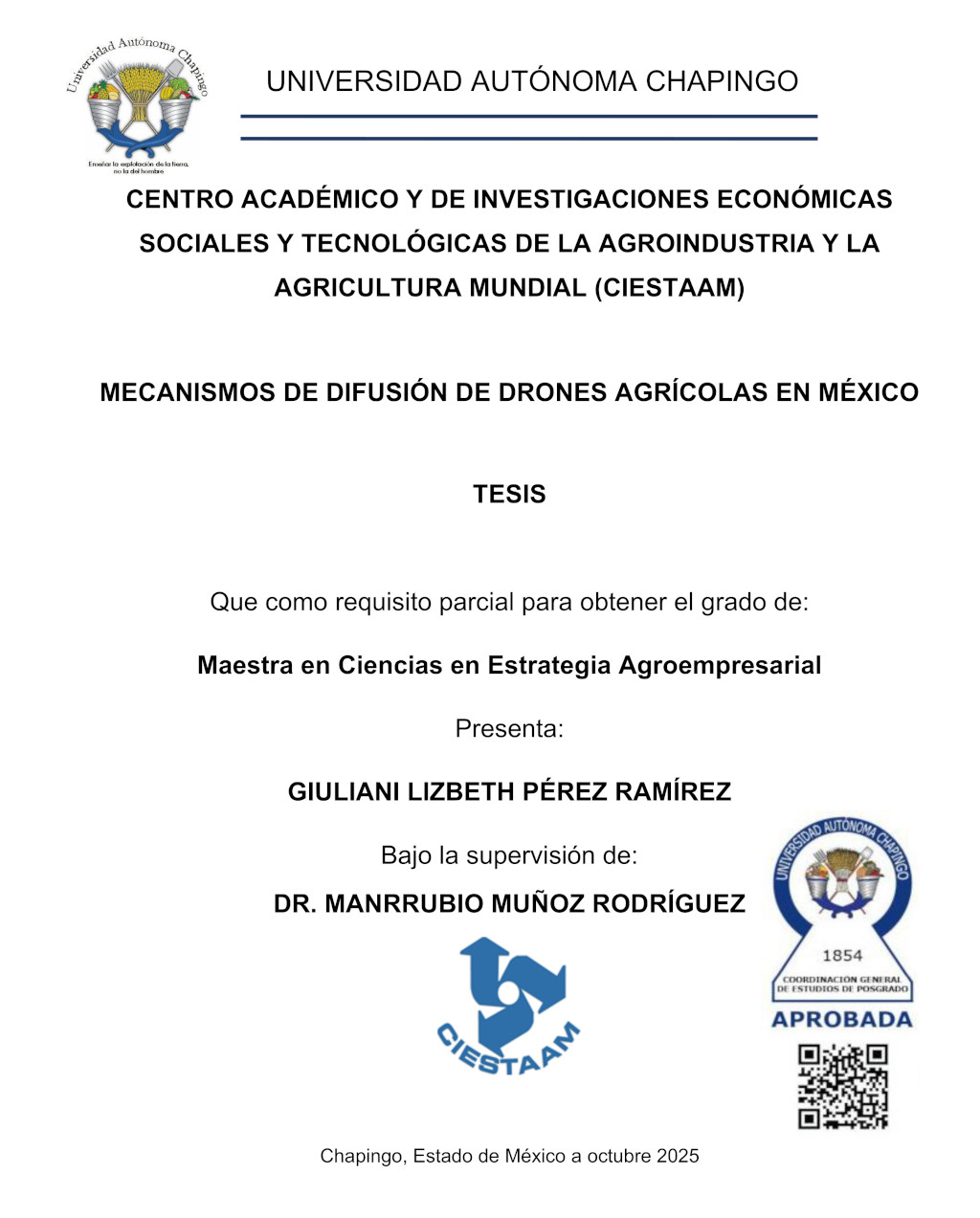 La agricultura es uno de los pilares fundamentales en la economía global, actualmente enfrenta el doble desafío de producir más alimentos con menor huella ambiental y mayor densidad nutricional, en un contexto de externalidades ambientales generadas por la propia actividad y sumando la escasez de mano en el campo. La agricultura mexicana enfrenta los mismos desafíos, el Censo Agropecuario (2022) identifica la escasez de mano de obra como uno de los principales problemas que enfrentan las unidades de producción junto al cambio climático, los altos costos de insumos. Ante ello la Agricultura de Precisión ha incorporado drones agrícolas que mejoran la eficiencia hídrica y operativa, reducen la deriva, elevan la seguridad del aplicador y mitigan la escasez de mano de obra en la aplicación de insumos. El objetivo fue analizar los mecanismos de difusión y explicar los factores que aceleran la adopción y uso de los drones en México, para formular un diseño de política pública orientada ampliar el acceso. Se realizaron diez entrevistas semiestructuradas, analizadas bajo el enfoque de estudio de casos. Los resultados identificaron cuatro mecanismos de difusión, dos directos: Importadores (Imp) y distribuidores (Dis) y dos indirectos: Prestadores de Servicios con Drones (PSD) y Vendedores de Insumos Agrícolas con Dron (VIAD); del análisis de estos mecanismos se identificaron tres factores relevantes: escasez de mano de obra, uso eficiente del recurso agua y mitigación del uso de agroquímicos. Un hallazgo clave fue la exclusión de los pequeños productores quienes poseen cultivos con extensión ≤10 hectáreas, debido a la falta de rentabilidad. Por ello, se planteó una propuesta donde se prioriza un modelo de maquila con drones siendo un esquema de difusión vía servicios, en lugar de centrarse únicamente en la venta y compra de equipo, a fin de reducir la brecha tecnológica y acelerar una adopción efectiva.