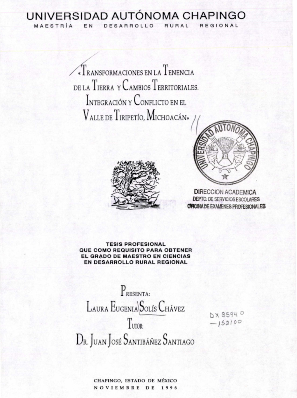 Transformaciones en la tenencia de la tierra y cambios territoriales. Integración y conflicto en el Valle Tiripetío, Michoacán