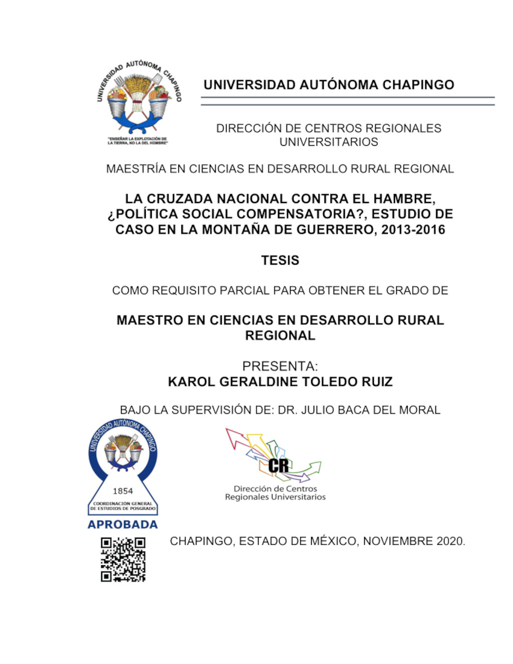 Tesis (Maestría en Ciencias en Desarrollo Rural Regional)