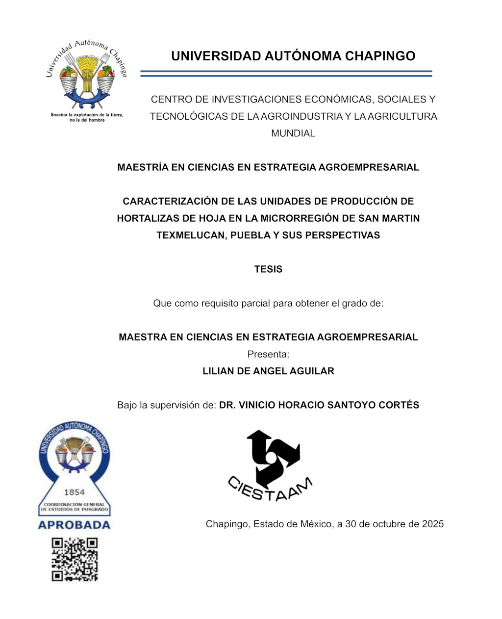 Caracterización de las unidades de producción de hortalizas de hoja en la microrregión de San Martín Texmelucan, Puebla y sus perspectivas