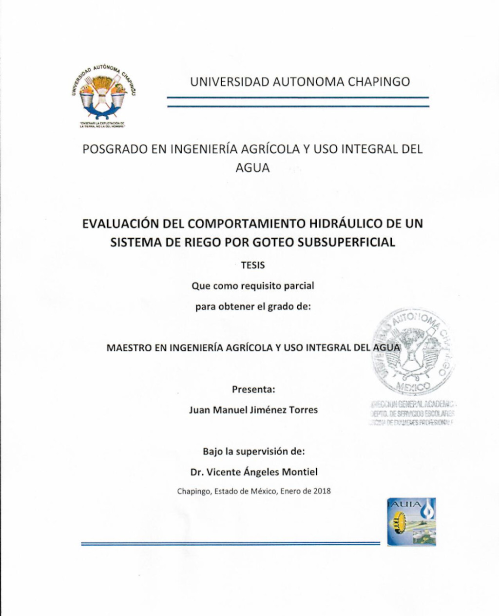 Tesis (Maestría en Ingeniería Agrícola y Uso Integral del Agua)